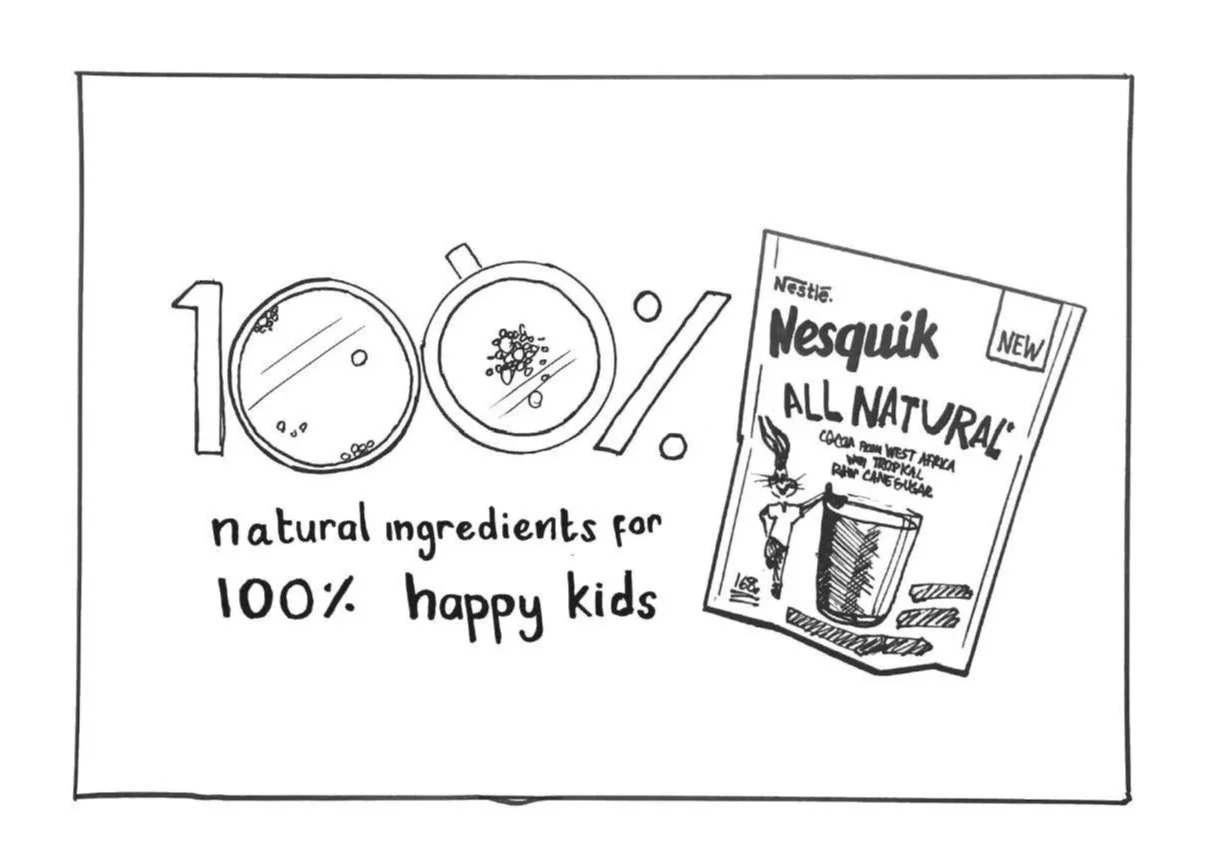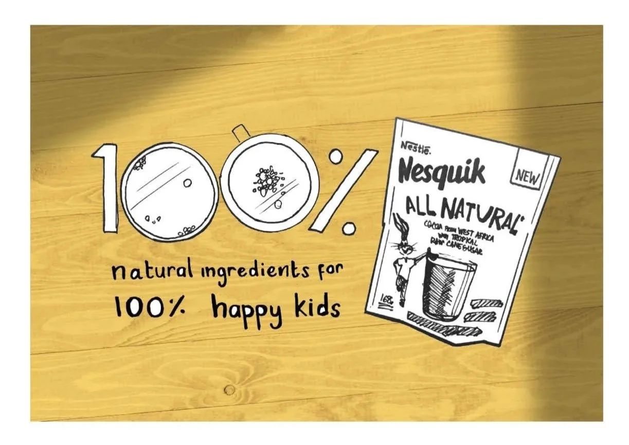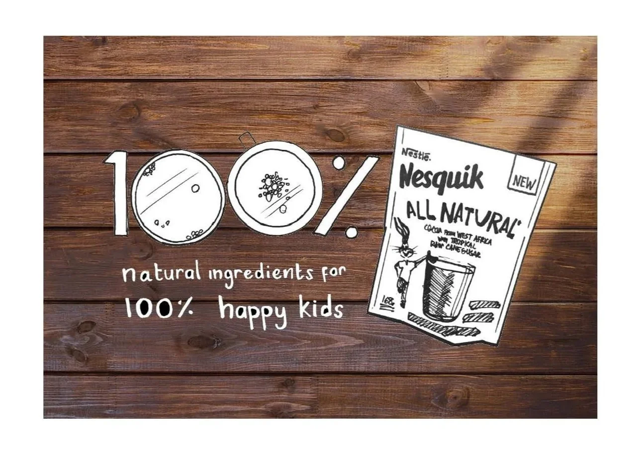 After experimenting with various cuts of sugar cane, pours of Nesquik, and different backdrops, we developed a series of images for the campaign. I designed a bold key visual that promotes the product's new natural outlook, highlighting the raw ingredients and the new packaging.